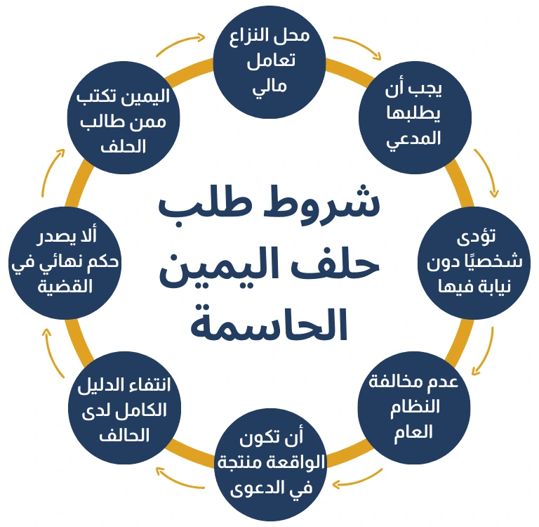 يُشترط لطلب حلف اليمين الحاسمة عدد من الشروط، نوضحها تفصيلًا في الآتي: